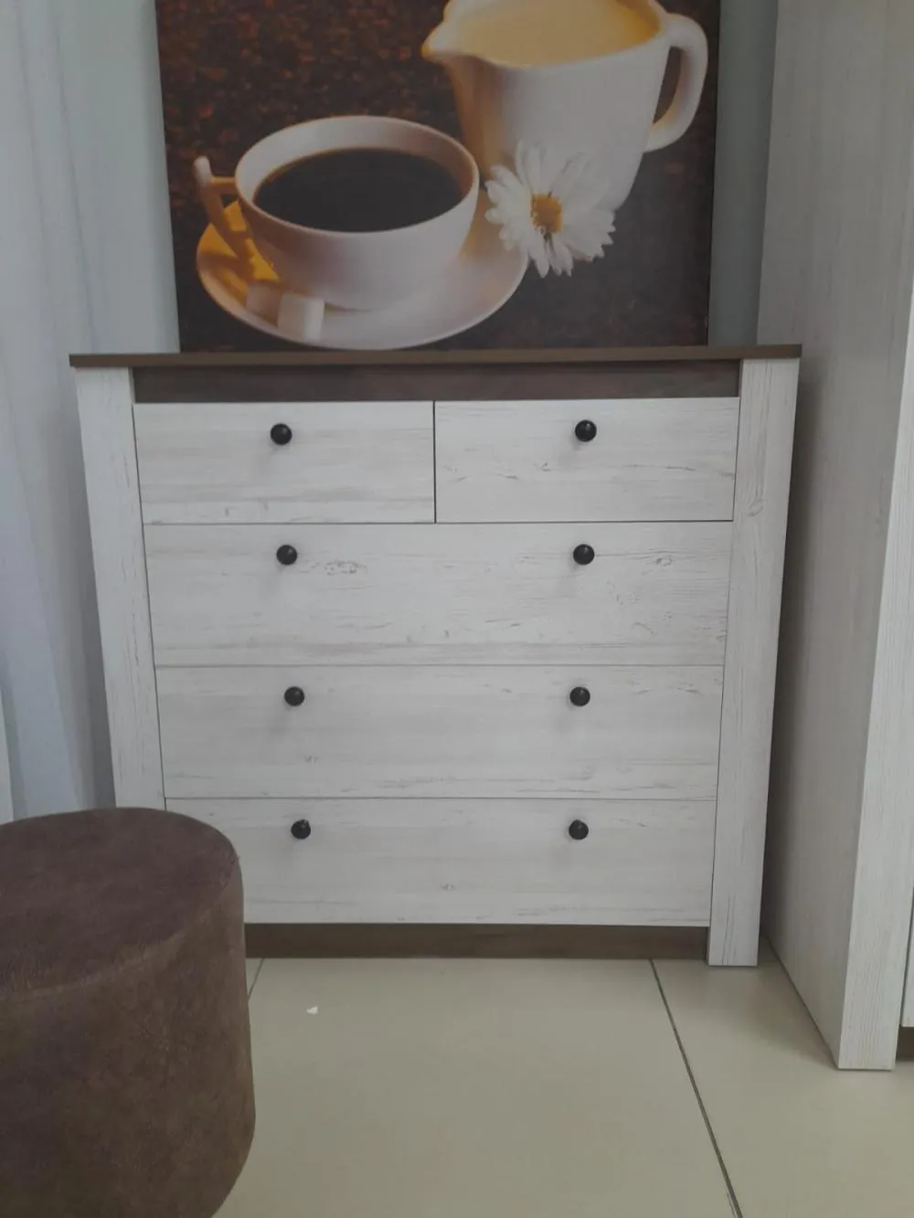 Купили в интернет-магазине Мебельград комод Калгари. Очень стильный. Запаха почти не было. Ящики удобные - выдвигаются п...