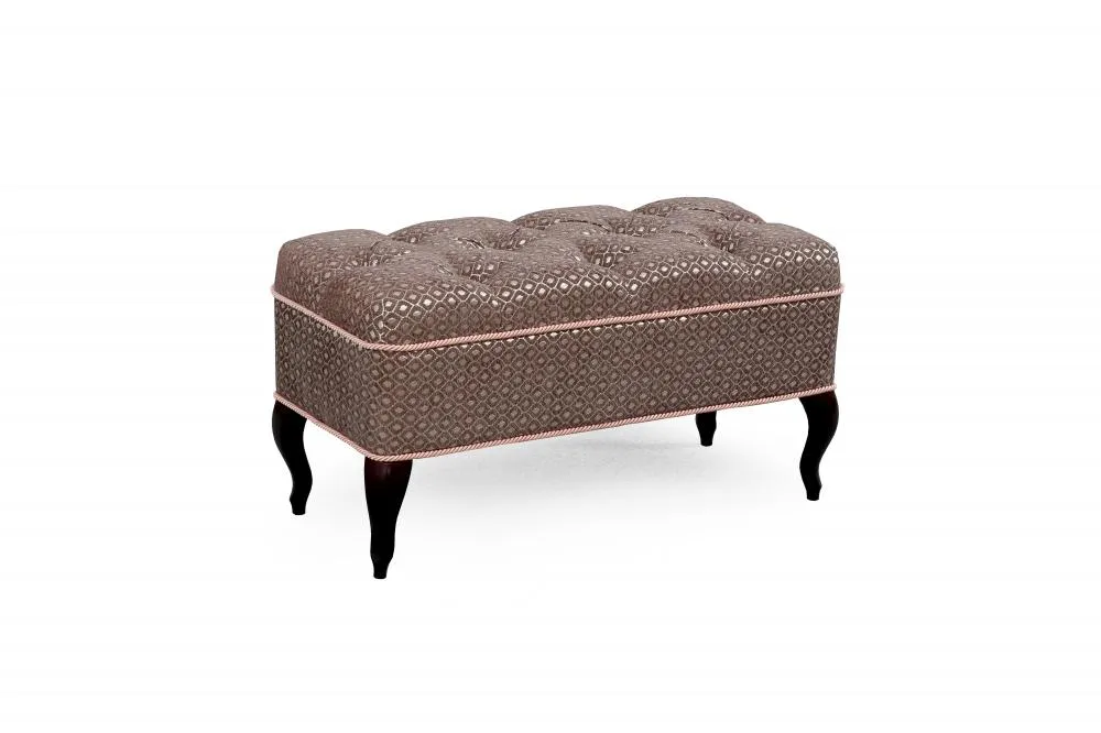 Каретная стяжка на высококачественном велюре, декоративные канты, опоры "кабриоль" из натуральной древесины (береза) сделают банкетку №15 изюминкой Вашего интерьера.