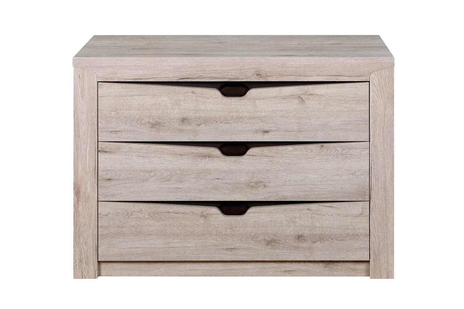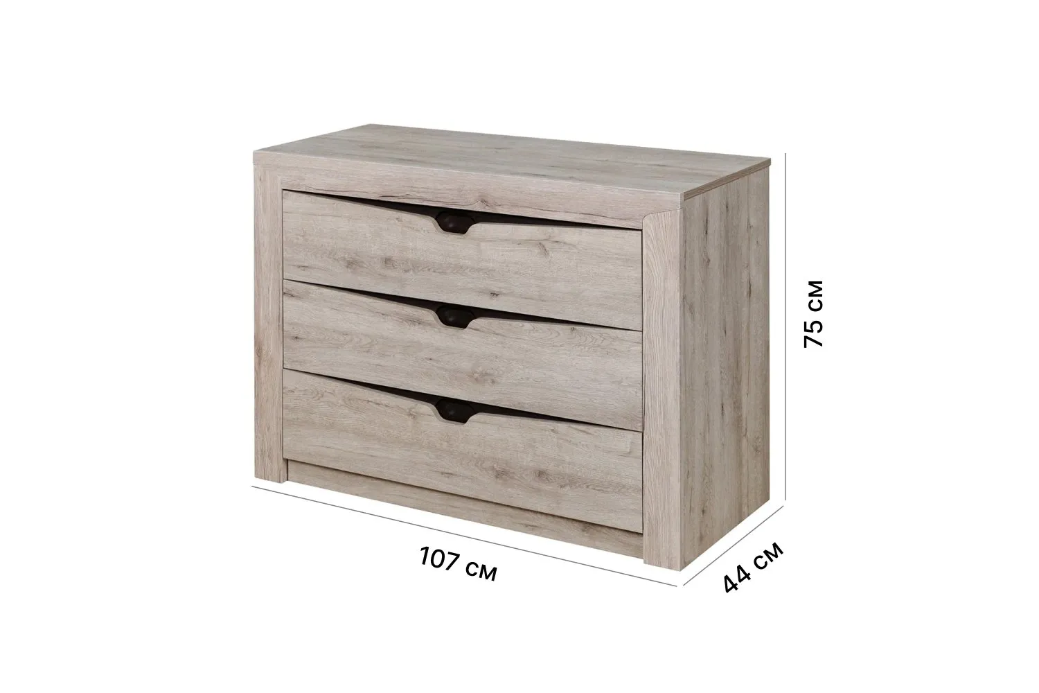 Комод "Соренто" идеально подойдёт для спальни и станет прекрасным дополнением к вашему интерьеру. Три вместительных ящика позволяют хранить множество вещей, таких как одежда, белье, аксессуары. В фасадах ящиков имеются декоративные вырезы, выполняющие функцию ручек.