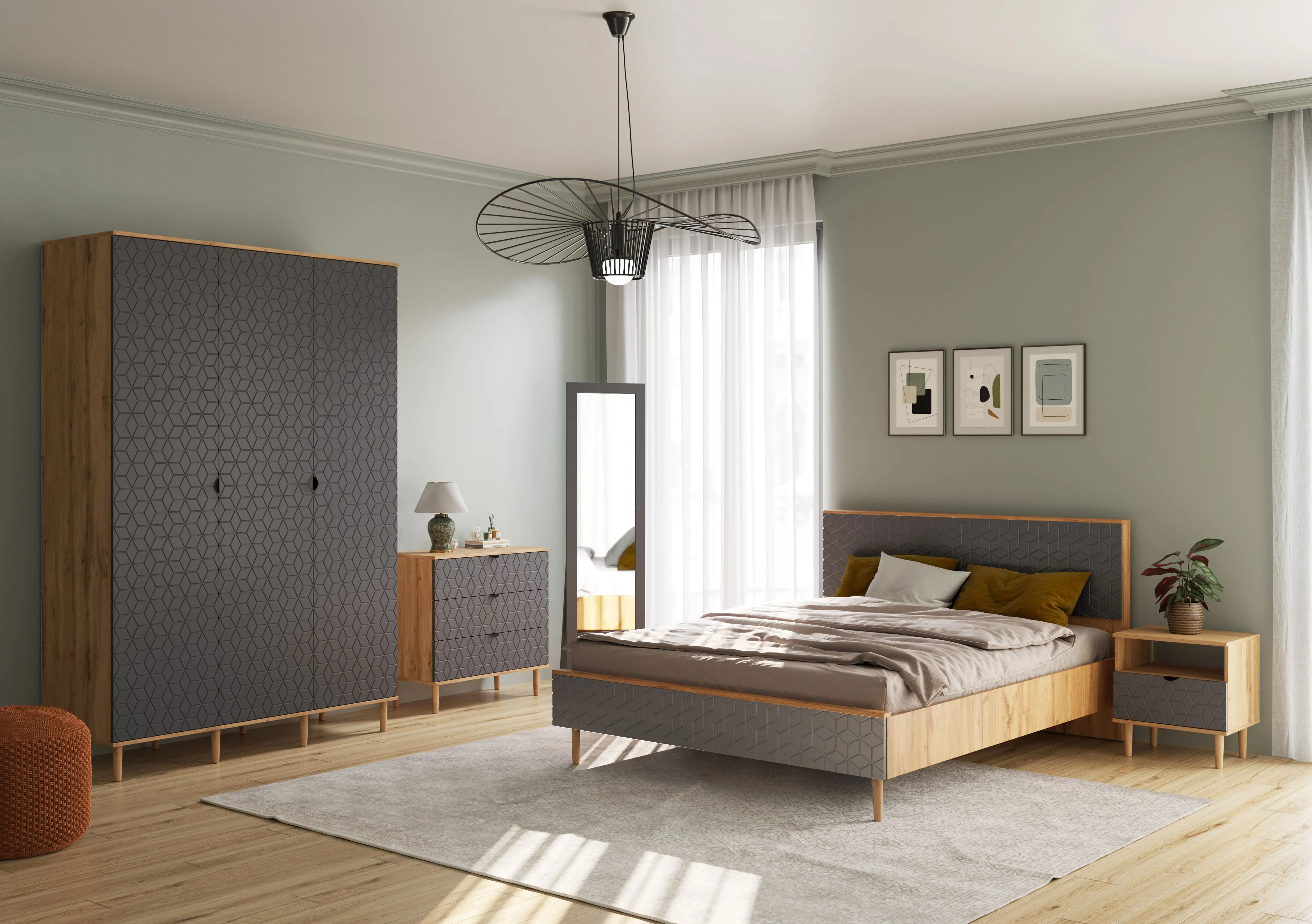 Трехдверный шкаф выполнен из качественных и безопасных материалов, что гарантирует его надежность, долговечность и сохранение первозданного вида на протяжении многих лет.