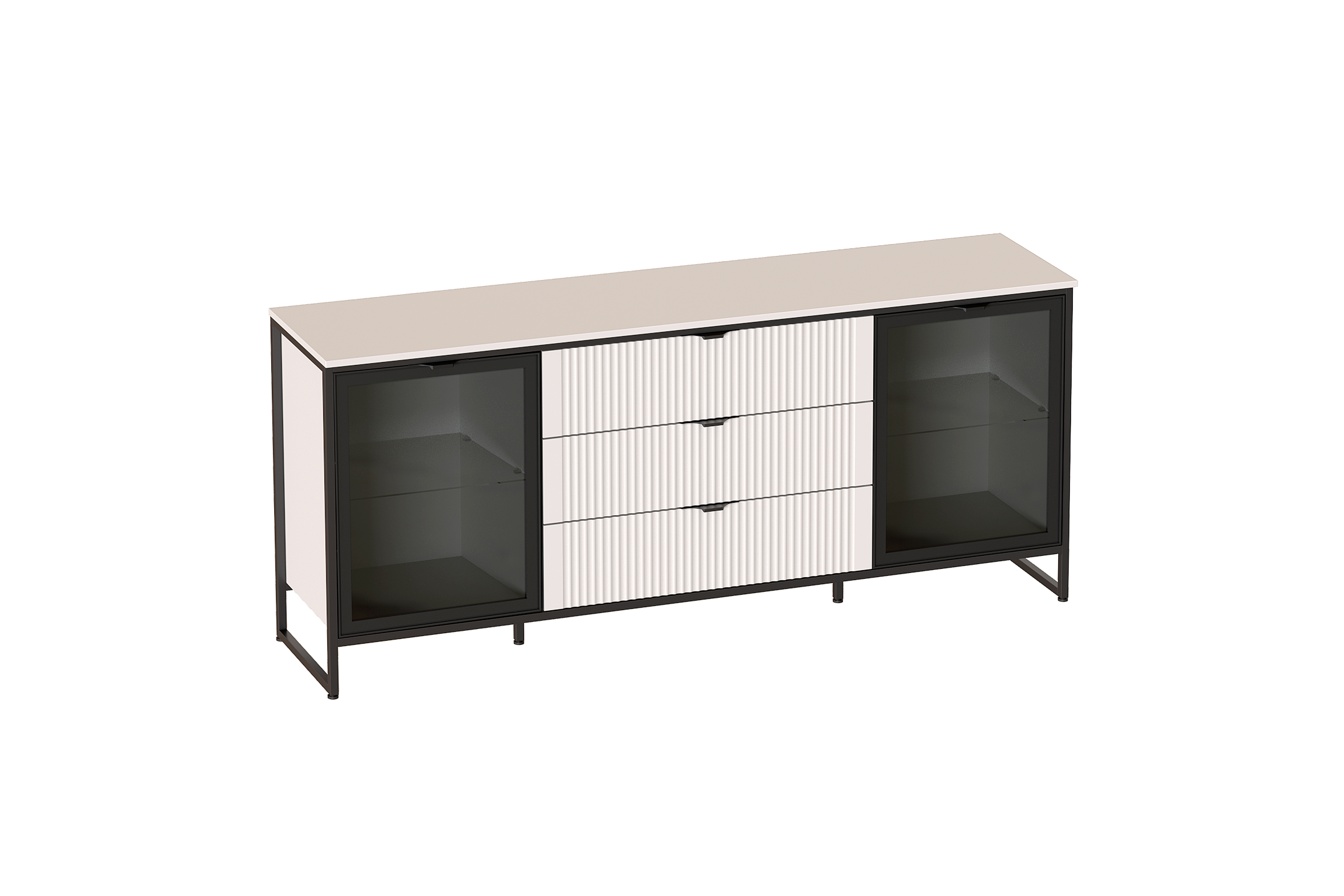 Дизайн коллекции гармонирует со стилем минимализм и лофт. Корпус изделий выполнен из качественного ЛДСП 16 мм, фасады из МДФ 16 мм. Толщина металлических опор - 20 мм.