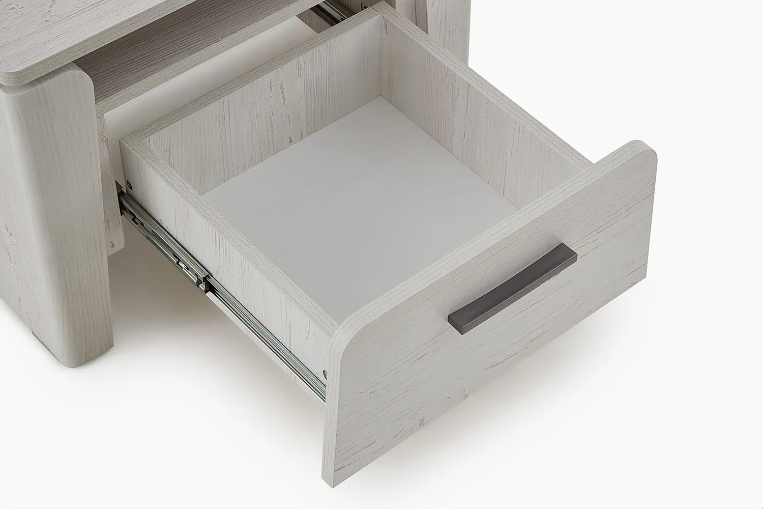 Благодаря компактным размерам, она не занимает много места и позволяет рационально использовать пространство спальни. Тумба оснащена одним ящиком, который идеально подходит для хранения личных вещей и аксессуаров. Шариковые направляющие обеспечивают плавный и бесшумный ход ящика, позволяя быстро и легко найти нужную вещь.