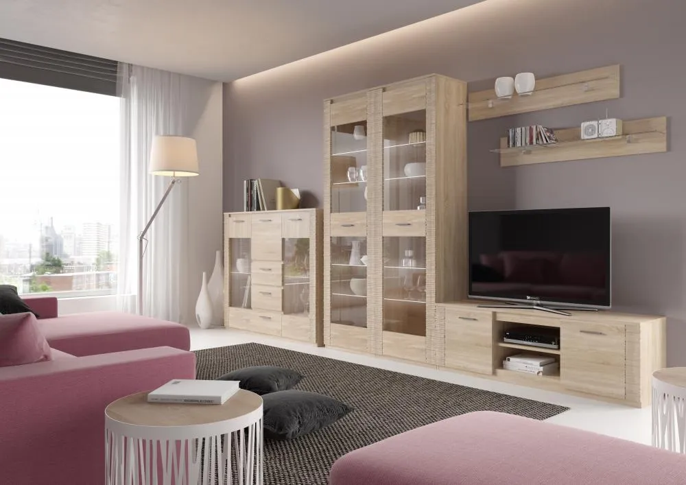 В витрине за общей стеклянной дверцей располагаются выдвижной ящик, четыре стеклянные и одна жёсткая полка. Четыре светильника «HLT Prismatic FT» для подсветки полок и блок питания в стандартную комплектацию не входят и приобретаются отдельно.